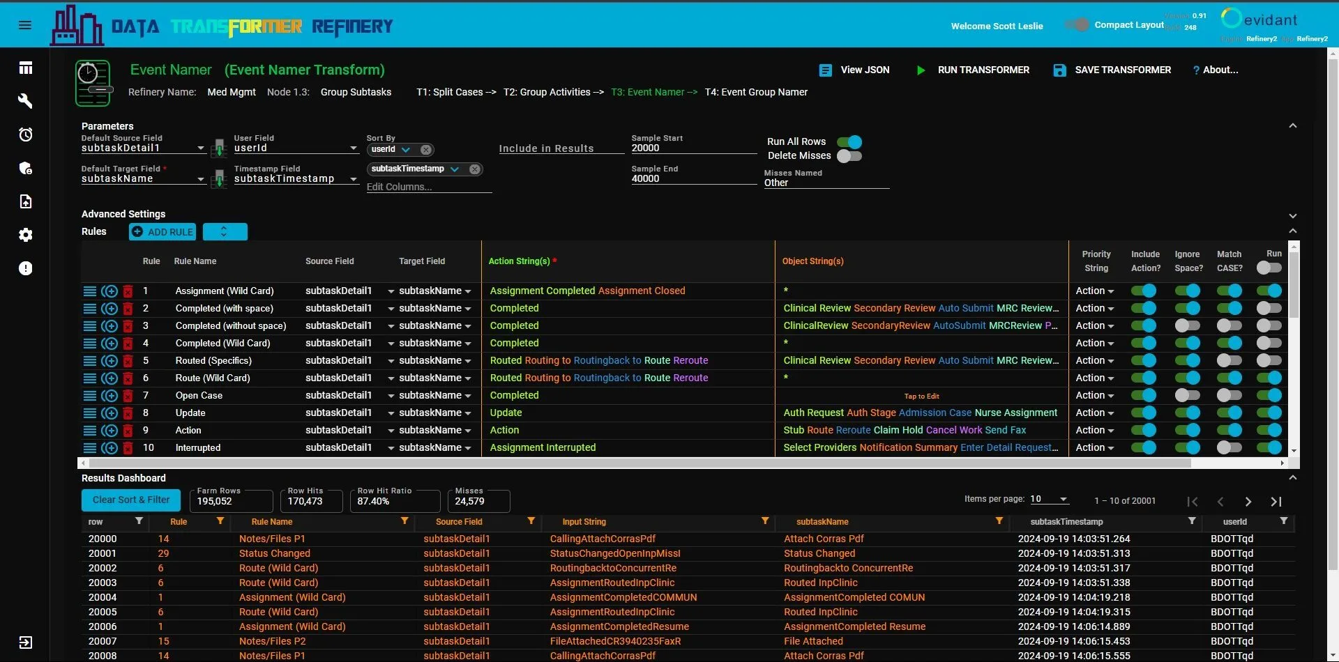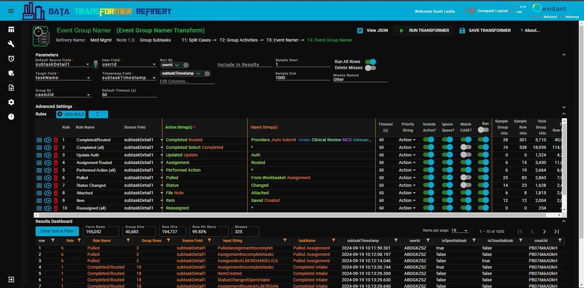 Process mining tools can produce more meaningful results with data which is improved through Evidant’s Data Transform Refinery